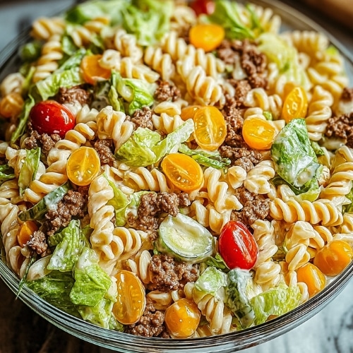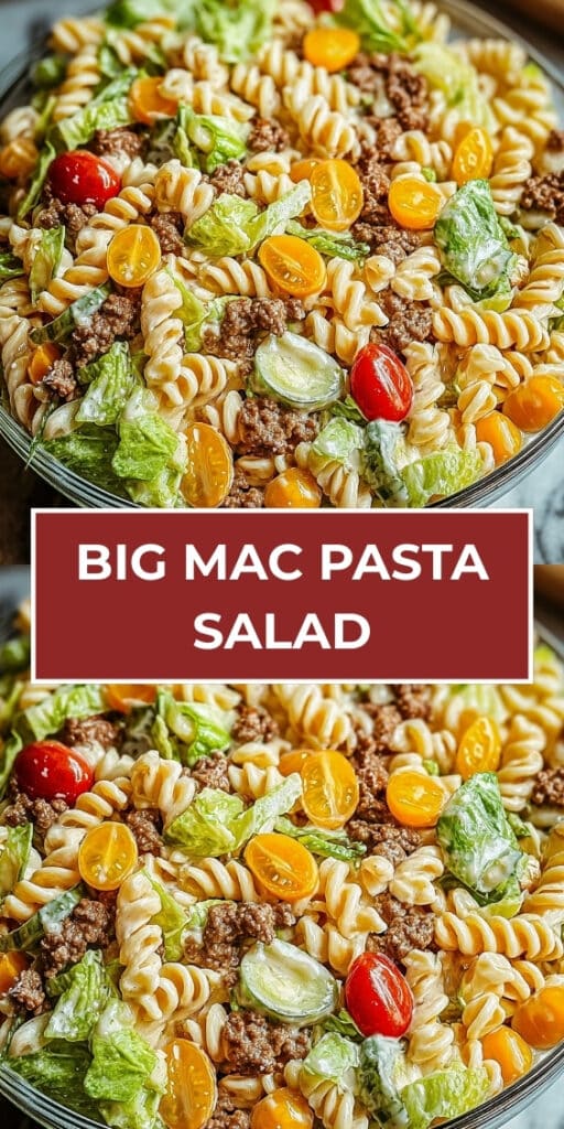 Big Mac Pasta Salad combines classic burger flavors in a light salad, perfect for any gathering.