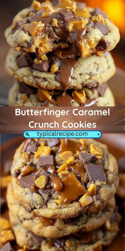 These Butterfinger Caramel Crunch Cookies are a sweet, gooey, and crunchy treat that combines candy bar indulgence with classic cookie comfort. Perfect for holiday celebrations, cookie exchanges, or a sweet snack at home, these cookies will quickly become a household favorite. Bake a batch, enjoy the rich textures, and delight in every buttery, chocolatey, caramel-filled bite!