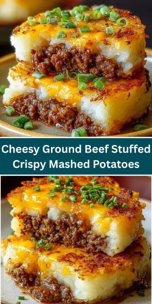 Cheesy Ground Beef Stuffed Crispy Mashed Potatoes