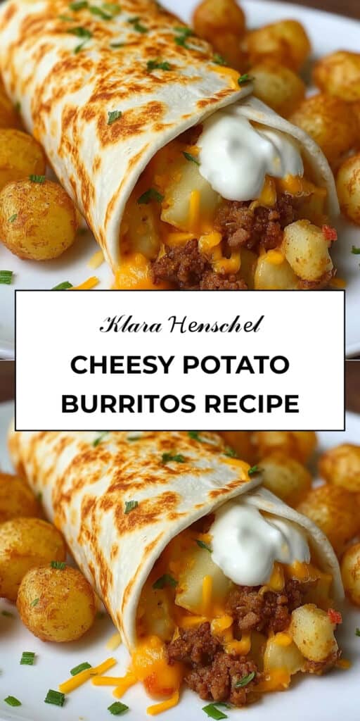 These Cheesy Potato Burritos are the ultimate comfort meal, combining crispy tater tots, seasoned ground beef, and gooey cheeses all wrapped in a warm tortilla. Perfect for a quick and delicious dinner!