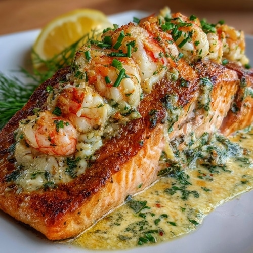 Elevate your weeknight dinner with this Crab and Shrimp Stuffed Salmon recipe. Tender, flaky salmon fillets are filled with a savory, creamy mixture of crab, shrimp, and cream cheese, seasoned with garlic and fresh parsley. Baked to perfection, this dish is impressive enough for guests yet simple enough for a family meal. A squeeze of fresh lemon brightens each bite, making it rich, flavorful, and unforgettable.