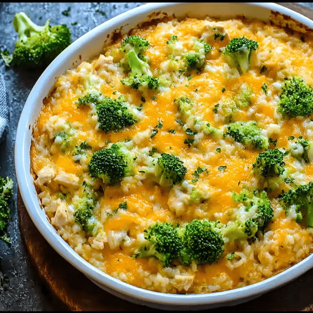 This Creamy Chicken Broccoli Rice Cheese Casserole is a comforting, cheesy one-dish meal loaded with tender chicken, fresh broccoli, and fluffy rice — perfect for busy weeknights.