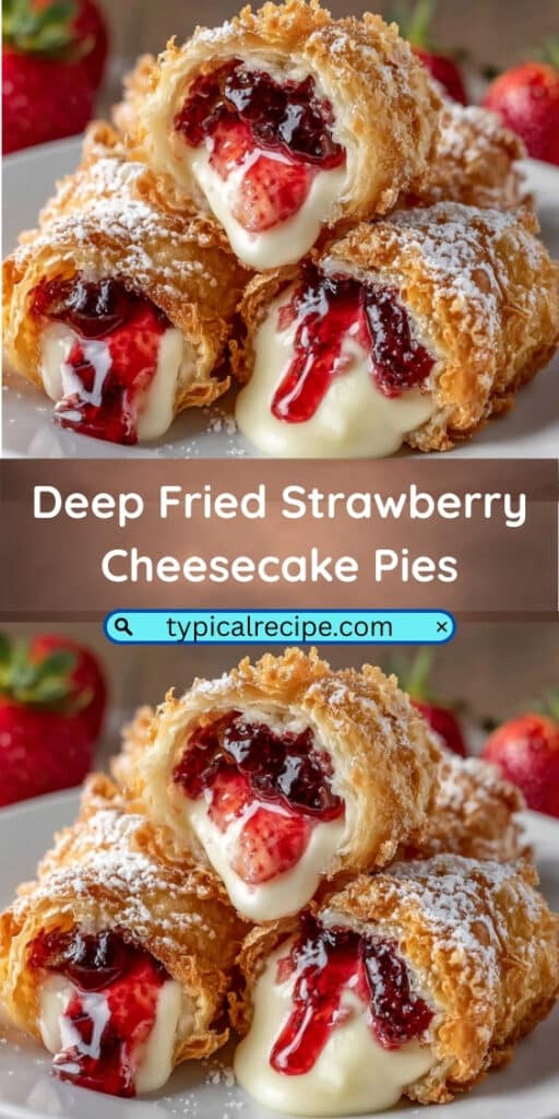Deep Fried Strawberry Cheesecake Pies are a delightful combination of textures and flavors—crispy, creamy, fruity, and sweet. With simple ingredients and straightforward steps, they offer a gourmet dessert experience without requiring advanced baking skills. Their versatility makes them perfect for holidays, cookouts, special occasions, or a fun weekend treat. Once you master the basic technique, you can customize the filling and toppings in infinite ways, ensuring this recipe becomes a favorite you return to again and again.