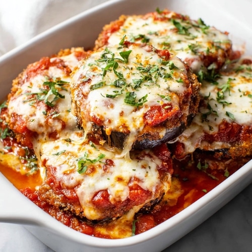 Eggplant Parmesan is the ultimate Italian comfort food — layers of perfectly fried, golden eggplant, tangy marinara sauce, and gooey, melted cheese baked to bubbly perfection. Every bite delivers a satisfying crunch followed by rich, cheesy indulgence. This dish is perfect for family dinners, cozy weekend meals, or when you want to impress guests with a homemade Italian classic. With this recipe, you get crispy, flavorful breading, tender eggplant, and that irresistible combination of Parmesan and mozzarella in every bite.