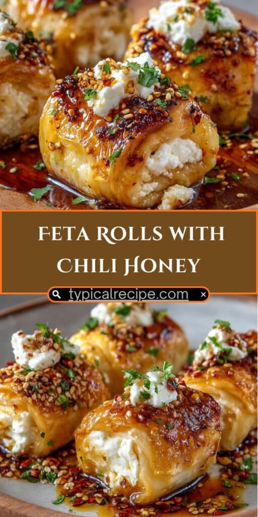 These Feta Rolls with Chili Honey are golden, flaky, and irresistibly savory-sweet! Creamy feta wrapped in buttery puff pastry, then finished with a drizzle of spicy honey — a perfect snack, brunch bite, or party appetizer.