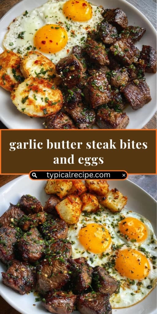 Garlic Butter Steak Bites & Eggs is a hearty, protein-packed breakfast combining tender seared steak bites, crispy seasoned potatoes, and perfectly cooked eggs for a complete skillet meal.