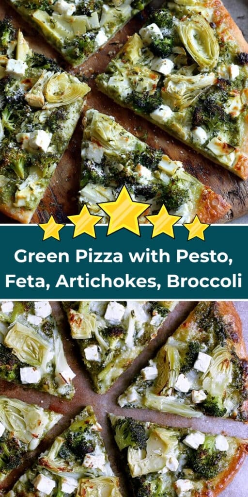 This yummy Green Pizza is topped with vibrant green vegetables, pesto, feta, artichokes, and broccoli. Easy to make and packed with flavor, it’s a colorful, satisfying vegetarian main course perfect for lunch or dinner.
