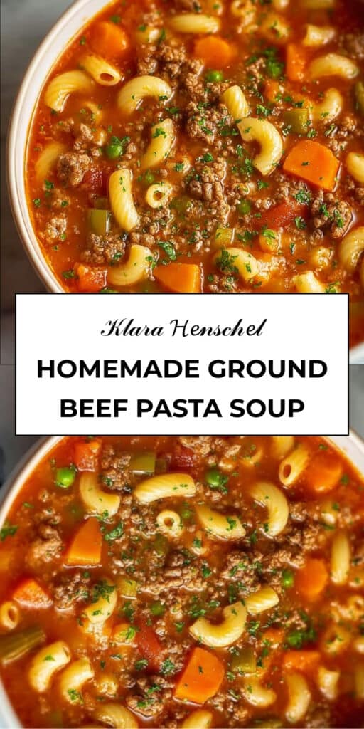 This Homemade Ground Beef Pasta Soup is a quick, comforting, and hearty meal that everyone will love. With rich flavors, tender pasta, and colorful vegetables, it’s the kind of soup that warms both body and soul. Make a pot, gather the family, and enjoy a cozy, satisfying dinner tonight.
