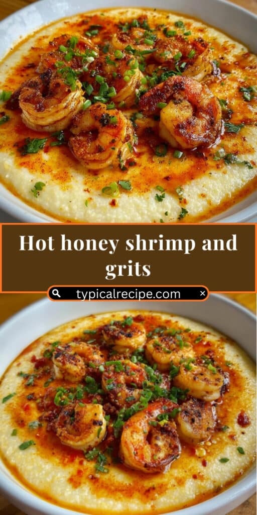 Hot Honey Shrimp & Grits is a flavorful Southern-inspired dish featuring creamy, cheesy grits topped with succulent shrimp coated in a sweet and spicy honey glaze.