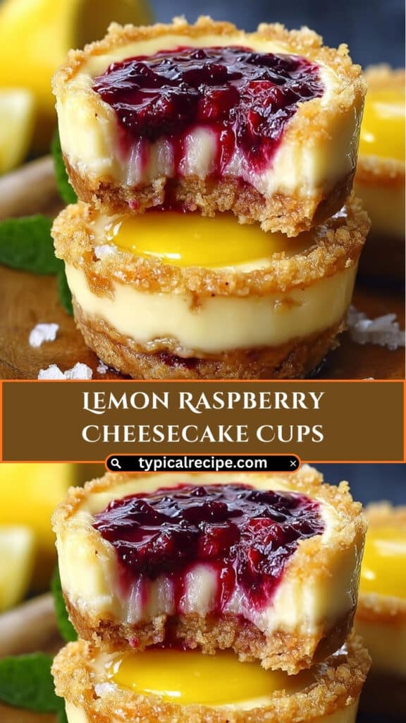 Creamy, refreshing Lemon Raspberry Cheesecake Cups with a buttery graham crust, tangy lemon cheesecake layer, and sweet raspberry topping. Perfect for individual desserts.