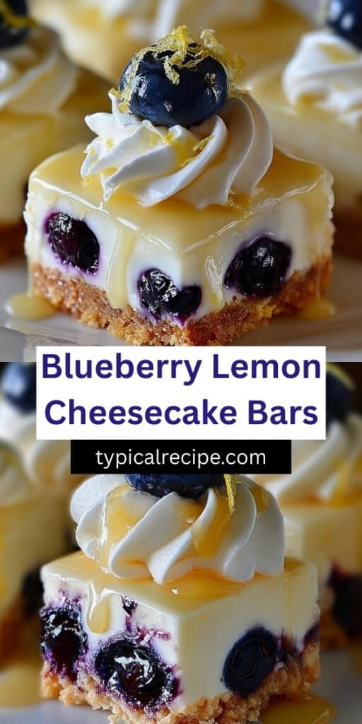 Delicious and creamy Lemon Blueberry Cheesecake Bars infused with fresh lemon and blueberries. Perfect for a sweet treat, these bars are bright, tangy, and satisfying.