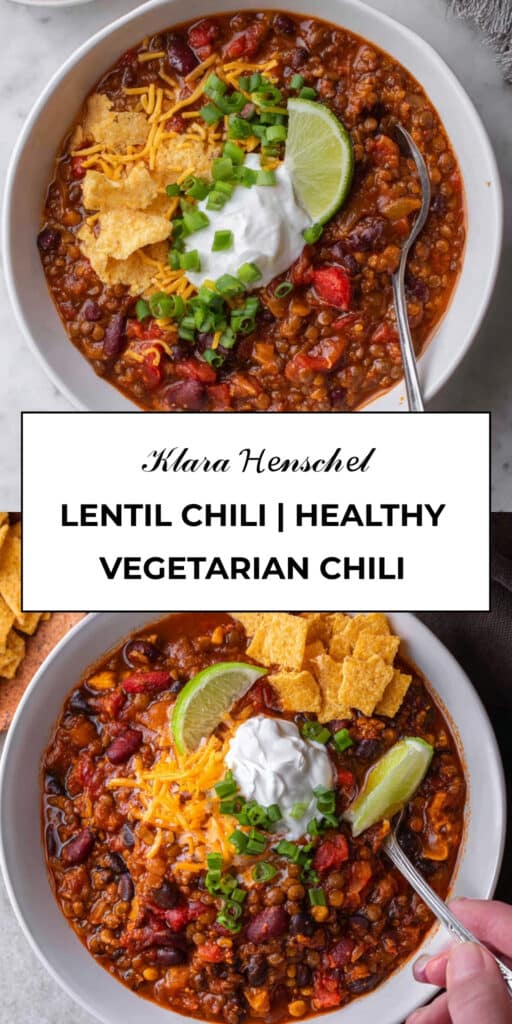 This fast and easy Lentil Chili is smoky but not too spicy, packed with plant-based protein from lentils and two types of beans. Perfect for a hearty weeknight meal with customizable toppings.