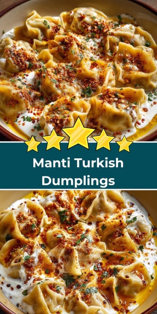 Manti are traditional Turkish dumplings filled with seasoned meat, served with garlicky yogurt and drizzled with spiced oil. This dish combines tender handmade dough, savory filling, creamy yogurt, and bold spices for a comforting meal.