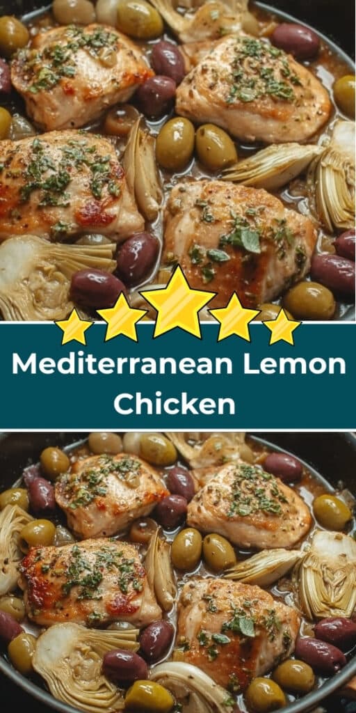 This Mediterranean Lemon Chicken with Artichokes & Olives proves that weeknight dinners don’t have to be boring. With its bright citrus aroma, savory sauce, and comforting warmth, it’s a dish that brings people together and turns an ordinary evening into something memorable. Try it once, and don’t be surprised if it becomes a regular in your dinner rotation—then come back and share how you made it your own.