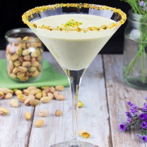 - Optional: Dip the rim of a martini glass in honey or simple syrup, then coat with crushed pistachios.
