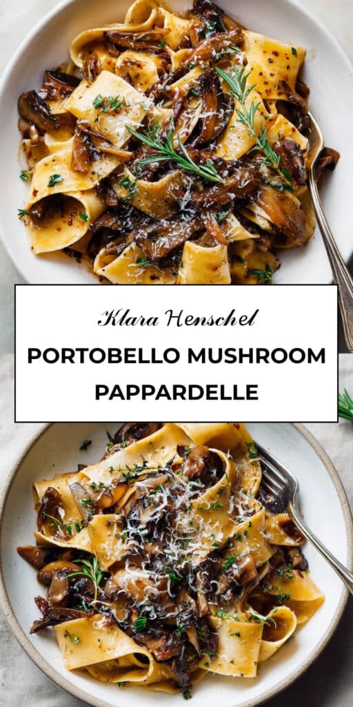 Serve this Portobello Mushroom Pappardelle with a side salad, roasted vegetables, or garlic bread. Garnish with extra Parmesan and a drizzle of olive oil for a beautiful, restaurant-quality presentation.