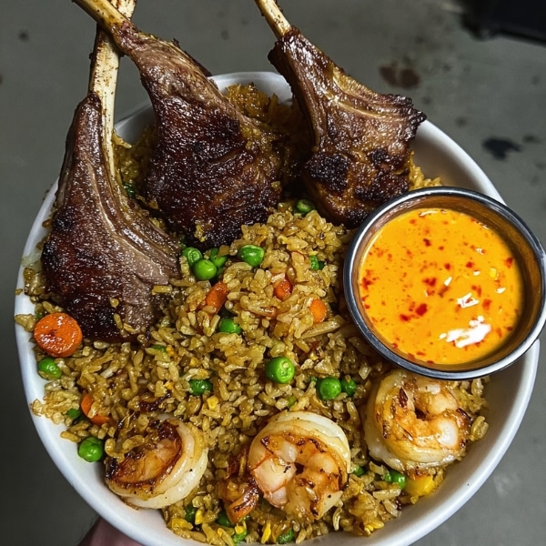 For a dinner that feels both indulgent and sophisticated, Shrimp Fried Rice with Lamb Chops & Spicy Yum Yum Sauce brings together succulent lamb, tender shrimp, and fragrant, perfectly seasoned fried rice. The dish is elevated with a creamy, spicy, and tangy yum yum sauce that ties all the flavors together. It’s a perfect weeknight treat or a special meal for entertaining guests, combining the rich taste of lamb with the familiar comfort of fried rice, bright vegetables, and a sauce that adds just the right kick.