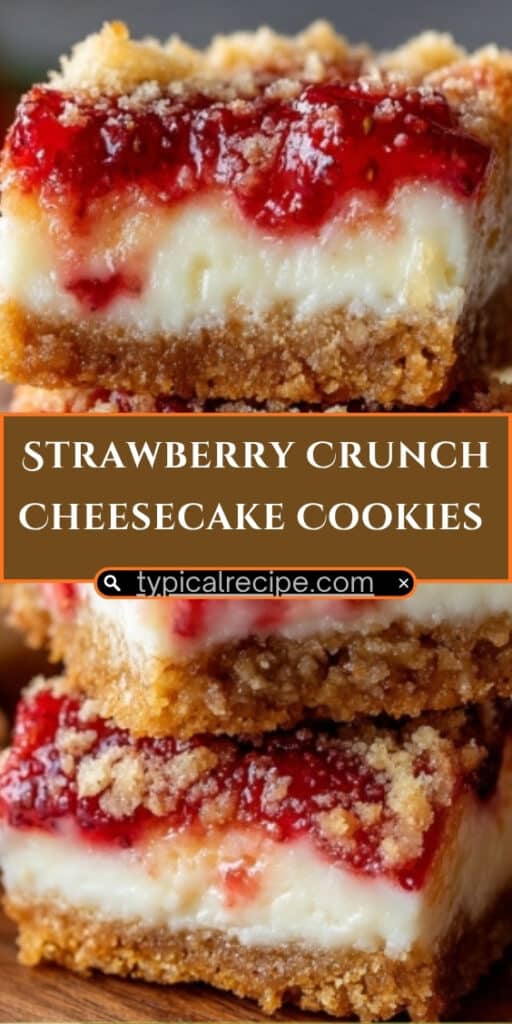 These Strawberry Crunch Cheesecake Cookies capture all the magic of the classic strawberry crunch ice cream bar — a soft sugar cookie base filled with creamy cheesecake and finished with a buttery graham-strawberry crumble. Every bite is a dreamy blend of soft, sweet, and crunchy textures — bakery perfection, made easy at home!