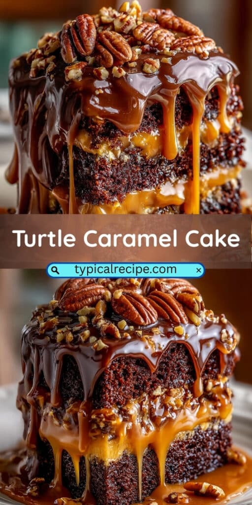 Indulge in the rich, nostalgic flavors of Turtle Caramel Cake, a delightful dessert that combines soft chocolate cake, luscious caramel filling, and crunchy pecans. Perfect for birthdays or cozy dinners, with minimal effort required.